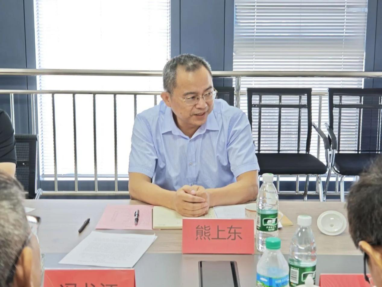 在“新一代信息技术产教融合公共实训基地”,熊上东实地考察基地建设和运营情况,对基地概况、主要做法、建设成效、存在问题进行详细了解。座谈会上,熊上东听取了学校“新一代信息技术”“数字经济”“数智金融”三个省级基地负责人的详细汇报。校企双方就打造“双师”型队伍、信息化平台建设、收益分配机制等内容进行了探讨。